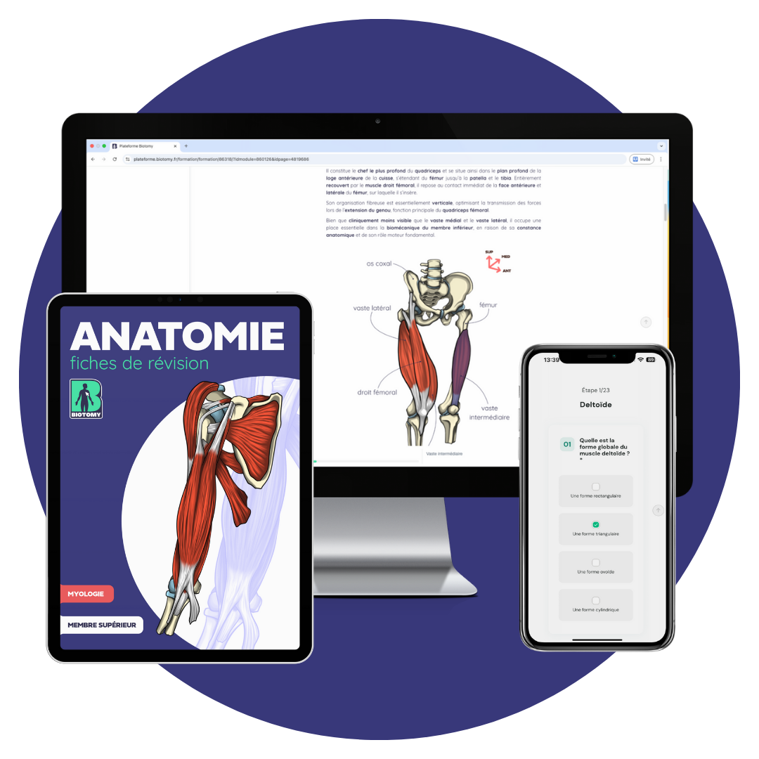 Optimise ton apprentissage et améliore ta maîtrise de l'anatomie, grâce à des méthodes éprouvées et un contenu validé par des experts.